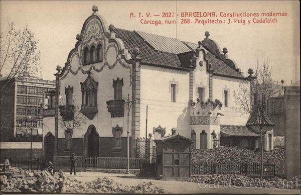 Front: A. T. V.-2022 - BARCELONA, Construcciones modernas Córcega, num 268. Arquitecto : J. Puig y Cadafalch ANY SICAIY 101 Back: UNION POSTAL UNIVERSAL ESPAÑA Correspondencia Direccion Ed. Angel Toldra Viazo, Barcelona