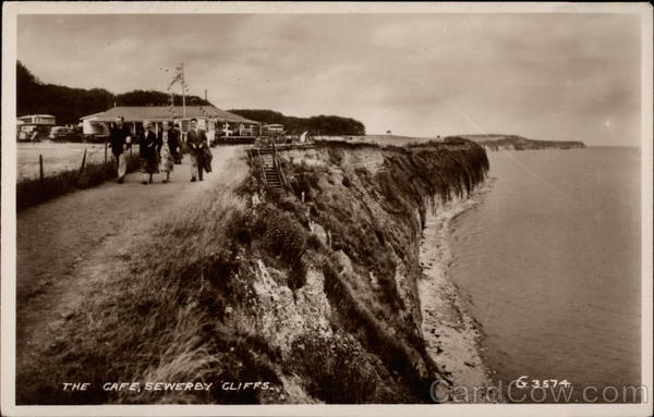 Front: G.3574 THE CAFE, SEWERBY CLIFFS. Back: VALENTINE'S 40-1 THROUGHOUT URI GREAT BRITAIN -- THIS IS A REAL PHOTOGRAPH