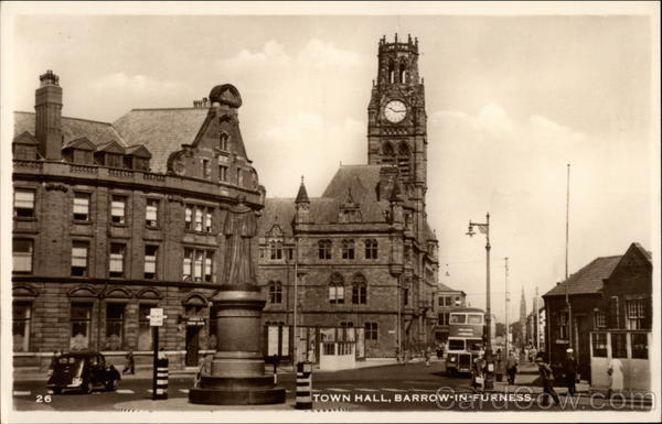 Front: 44 LOUNGE sane TOWN HALL, BARROW-IN-FURNESS. 26 Back: THIS IS A REAL PHOTOGRAPH WITH GREETINGS