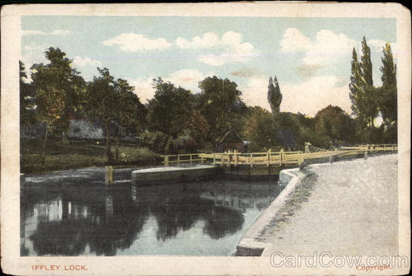 Front: IFFLEY LOCK. Copyright. Back: CARD. 1/2 d. STAMP. 1 d. WRITTEN HERE, FOR INLAND POSTAGE THIS SPACE, AS WELL AS THE BACK, MAY NOW BE USED FOR COMMUNICATION FOR FOREIGN POSTAGE THE BACK ONLY (Post Office Regulation).