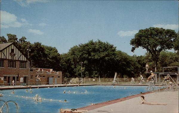 Municipal Swimming Pool in Riverside Park, Moline, III. Photographed by B. A. "Bob" Lenox Dist. by Blackhawk Photo Service, Moline, Ill. 37589-B WIST NYAER. N. Y.