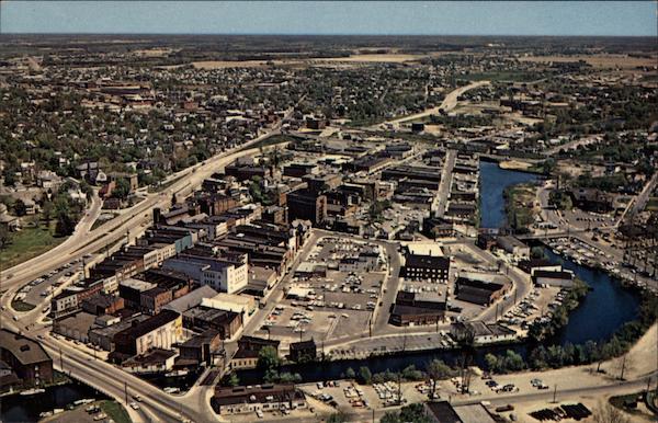 Aerial view looking northeast showing business