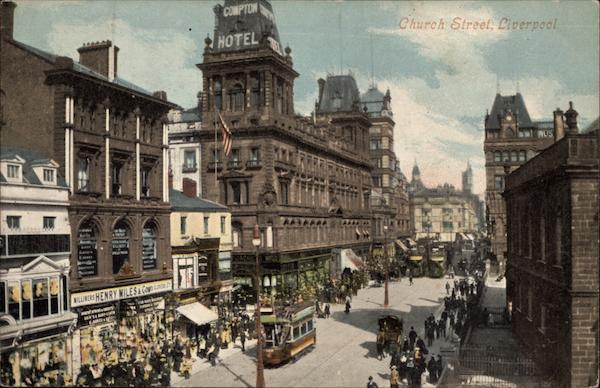 Front: COMPTON Church Street, Liverpool RUS RUE ACOPA la 4LA DACKE S S WILLINERS HENRY MILES & COME UVERS E STREN Back: Valentine's Series 611 Write Here for Inland Postage only