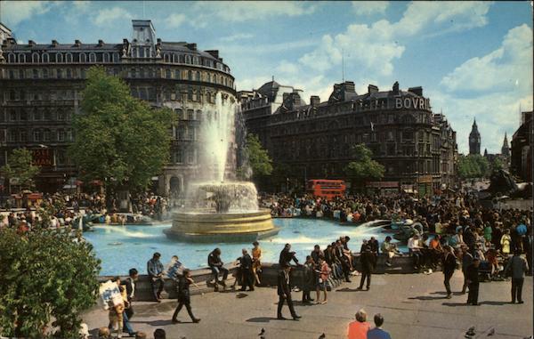Crowds in Trafalgar Square, London
