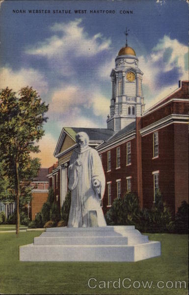 Front: NOAH WEBSTER STATUE, WEST HARTFORD. CONN 国券 Back: STAR 15173 A "COLOUR PICTURE PUBLICATCAMBRIDGE, MASS., U. S. A. SOLD BY CAPITOL NOVELTY CO., HARTFORD, CONN