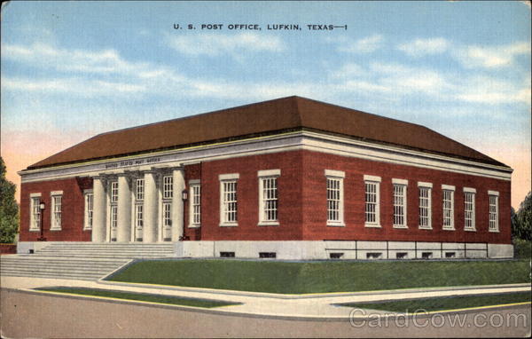Front: U. S. POST OFFICE, LUFKIN, TEXAS 1 INTED STATE POIT OFFICE Back: 31216 N ST MADE IN U.S.A. BY E. C. KROPP CO., MILWAUKEE, WIS.