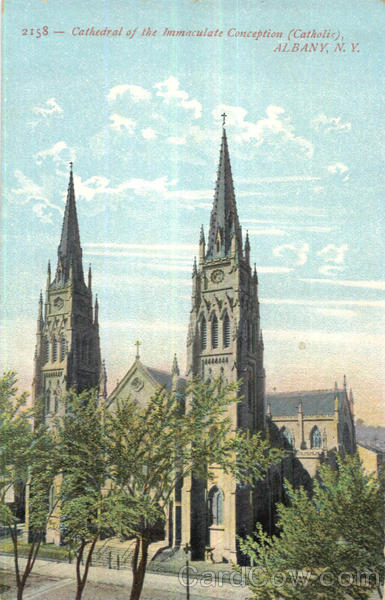 Front: 2158 - Cathedral of the Immaculate Conception (Catholis), ALBANY, N. Y. Back: SOUVENIR POST CARD Co., NEW YORK Post Gard TWO CENTS