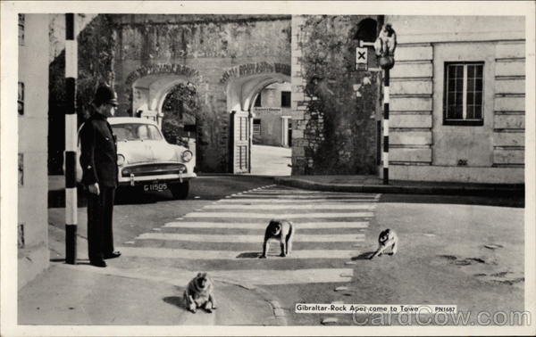 Front: areni Cneme G 11505 Gibraltar-Rock Apes come to Town PN1687 Back: 8. in Britain “S.P.Q.R." Tobacconist, 146 Main Street, Gibratlar