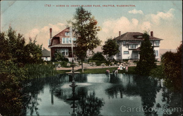 Front: 1743 SCENE IN DENNY BLAINE PARK, SEATTLE, WASHINGTON. Tordo Back: MADE IN AMERICA BY EDW. H.MITCHELL AT SAN FRANCISCO