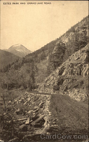 Front: ESTES PARK AND GRAND LAKE ROAD. Back: Scenes of ESTES PARK and the Rocky Mountain National Park Playground of the World Published by W. T. Parke, Estes Park, Colorado