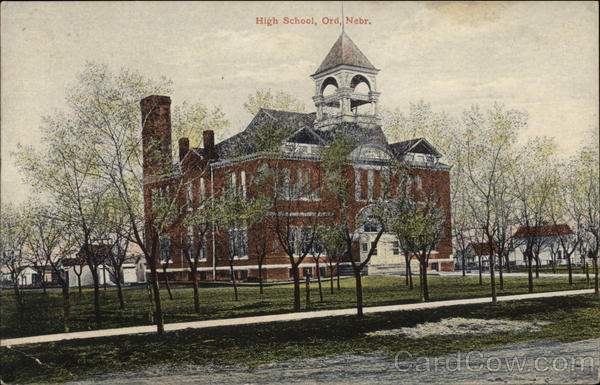Front: High School, Ord, Nebr. Back: C.E.WHEELOCK&CO PEORIA. ILL. EXCLUSIVE IMPORTERS Made in Germany. Johnson Drug Co., Importers & Publishers, Ord, Nebr. 129056
