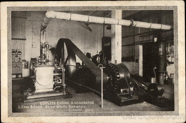 Front: CORLISS ENGINE & GENERATOR LITEN &SONS. Snow White Bakery- Clinton. lowa. Back: کر Mr. will call on you on or about