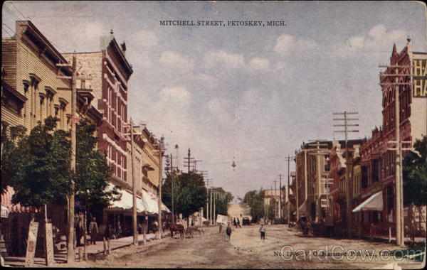 Front: MITCHELL STREET, PETOSKEY, MICH. HA No. 1296. V. O, Hammon Pub. Co., Chicago Back: 3.50 سے ی Domestic and M_ Zor