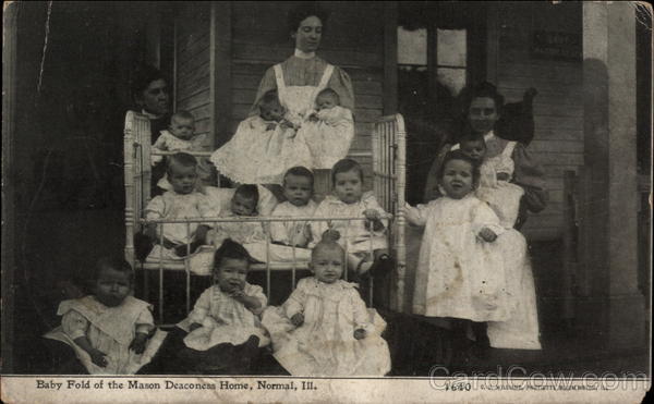 Front: Baby Fold of the Mason Deaconess Home, Normal, Ill. 1640 c. U. WILLIAMS, PHOTETTE BLOOM NGTON, ILL Back: P. P. T C.U.WILLIAMS T BLOOMINGTON I LLINOIS