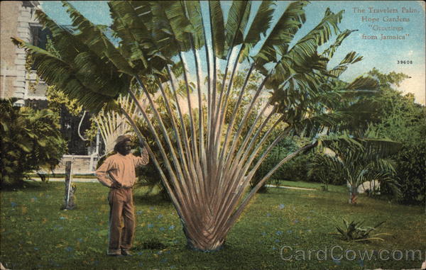 Front: The Travelers Palm. Hope Gardens "Greetings from Jamaica" 39608 Back: ½ d 1 d Jamaica (Jamaique) PUBLISHED BY A. DUPERLY & SON, KINGSTON, JAMAICA