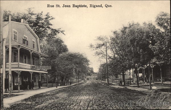 Front: Rue St. Jean Baptiste, Rigaud, Que. EDGIBOUTIN HOTEL RIGAUD Back: Pub. by Castonguay, Photographer, Ottawa, Ont.