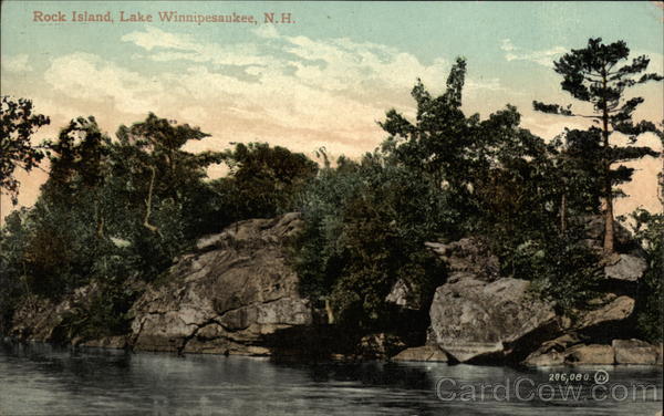 Front: Rock Island, Lake Winnipesaukee, N.H. 206,080. O Back: The Valentine & Sons' Publishing Co., Ltd., New York SOUVENIR POST GARD