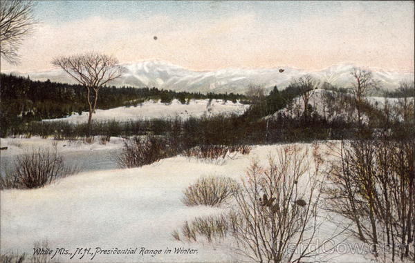 Front: White Mts., N.l.,Presidential Range in Winter. Back: CARD. Island Mexican 1c Foreign 2c 69624 Pub. by The Atkinson News Co., Tilton, N. H. No. 1259. Made in Germany. Write message here.