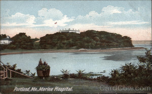 Front: Portland, Me, Marine Hospital. Back: Post Card . One Cent for United States, and Island Possessions, Cuba, Canada and THE HUGH C.LEIGHTON CO. MANUFACTURERS. PORTLAND, ME., U.S.A. FRANKFORT MAIN, GERMANY. N: 2436
