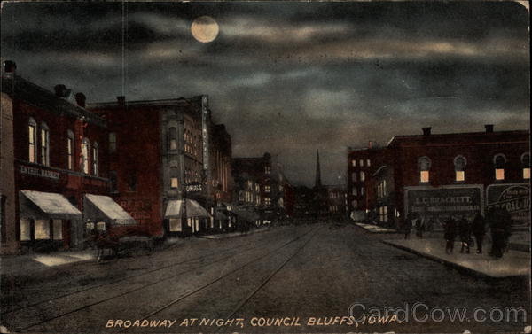 BROADWAY AT NIGHT, COUNCIL BLUFFS, 1OWA.