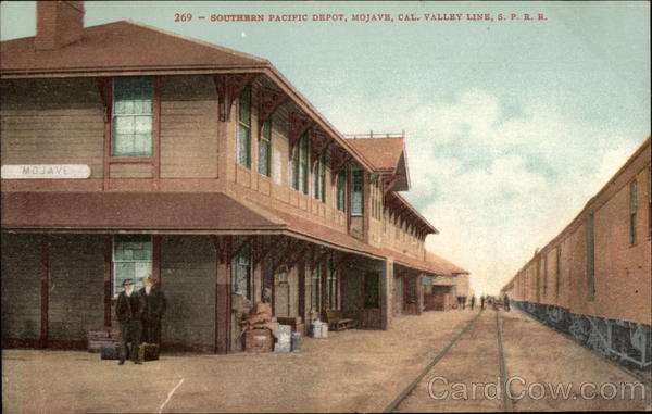 Front: 269 SOUTHERN PACIFIC DEPOT, MOJAVE, CAL, VALLEY LINE, S. P. R. R. MOJAVE Back: -Post Card- THE UNITED STATES NI Q3IN16d EDWARD HMITCHELL PUBLISHER, SAN FRANCISCO