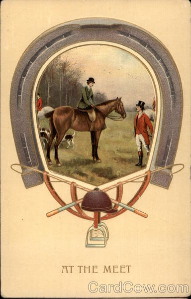Equestrian Scene (Woman on Horse and Man in Hunting Gear) with Horseshoe Frame