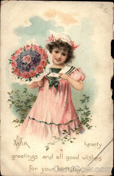 Front: With hearty greetings and all good wishes for your birthday. Back: ARTISTIC lar ater RR No3 Pa