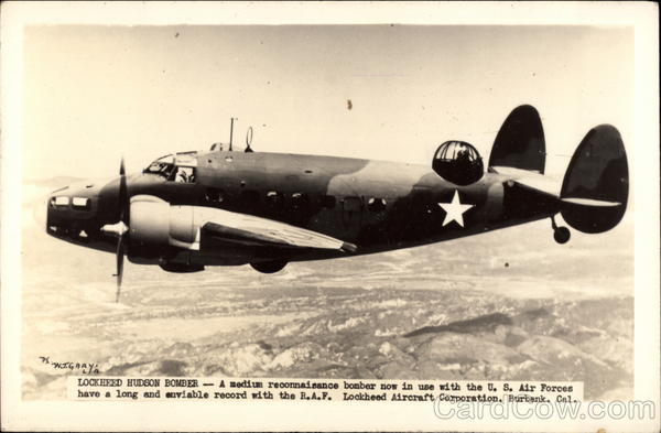 PS LOCKHEED HUDSON BOMBER A medium reconnaisance bomber now in use with the U. S. Air Forces have a long and enviable record with the R.A.F. Lockheed Aircraft Corporation, Burbank, Cal.