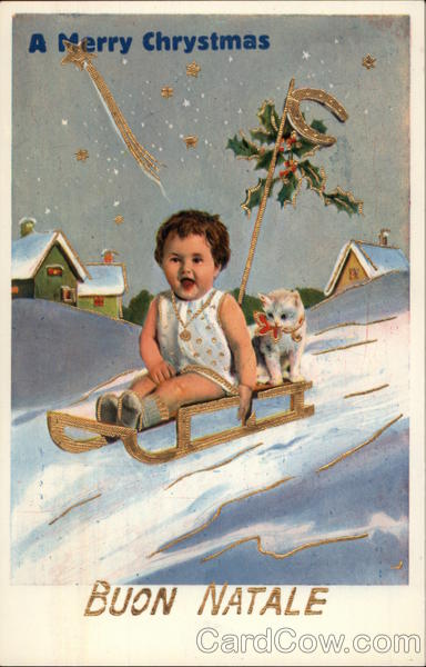 Front: A Merry Chrystmas BUON NATALE Back: Palermo Scicly/ Merry christ Mas impurte D'Italie -- Printed u lialy To! To you. Jewel and James Stamparo m intra From: David S. Cecami 4294