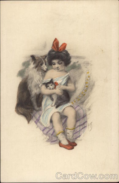 Young Girl with Dog and Cat