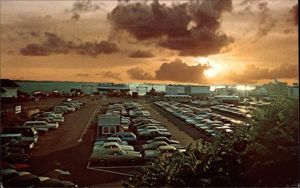 Front: EXIT 308 PAANING LOT OFFICE Back: SUNSET Woods Hole Steamship Authority Pier Woods Hole - Cape Cod Mass. Color Photo & Published by J. Lazarus, P.O. Box 367, Hyannis, Mass. 02601 122814 Address