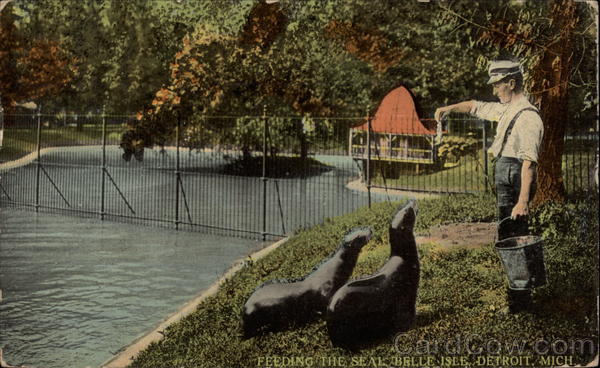 FEEDING THE SEAL BELLE ISLE, DETROIT, MICH.