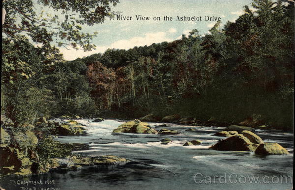 Front: River View on the Ashuelot Drive Capyright 1907 BVAR LEiersne Back: For Address. No. 13897 Copyright 1907 by A. R. Levering, E. Northfield, Mass. M. ow)