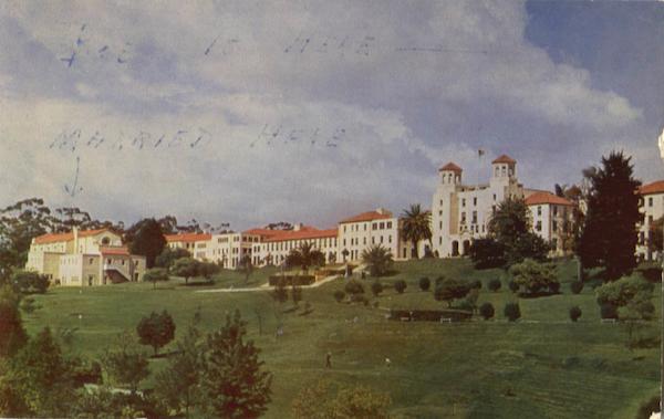 The United States Naval Hospital is located in Balboa Park, San Diego, the largest government hospital in the world. Building at left is Hospital Chapel.