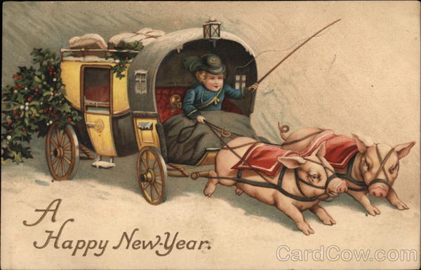 Front: А, Happy New Year. Back: Dic 29, 1912 29.1915 DEC 38 30 AM Dear guliti your under as are. now. Wich you a He appy new from glaz Brot BaB DUS No. 15909. Chromo emb. No. 15910. gel. Gold. Dessin 4. Argenting. Inioren olla TDOU wohl uqqut and