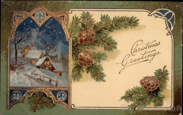 Front: 201 Christmas Greetings. FERNSE MARTME Back: The sands of this XX Reg.U.S.A.Pat Off. Blessing be No. 8974 gel. No. 8975 gel. Brillant. shores ass Mr Mrs Achan. Mu Era Butter.