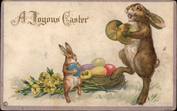 Front: CHER LITH C A Joyous Caster 4 Back: DOMESTIC 1¢ FOREIGN 2¢ I wish you Conrad Fallers a happy Easter from earl Metamora Series 509 D dee