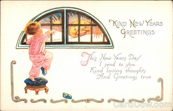 Front: KIND NEW YEARS GREETINGS This New Years Day to you Kind loving thoughts And Greetings true 5 Back: MADE IN U. S A. 329 ON THIS SIDE HERE