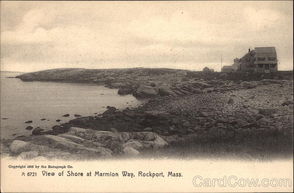 Front: Copyright 1905 by the Rotograph Co. A 6721 View of Shore at Marmion Way, Rockport, Mass. Back: The Kotograph Co., N. Y., City. (Germany.) RINT 33333