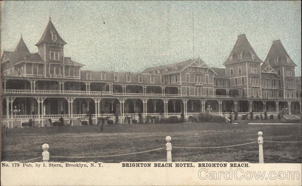 Front: No. 179 Pub. by I. Stern, Brooklyn, N. Y. ******* 00 *********** BRIGHTON BEACH HOTEL, BRIGHTON BEACH. Back: Two CENTS.