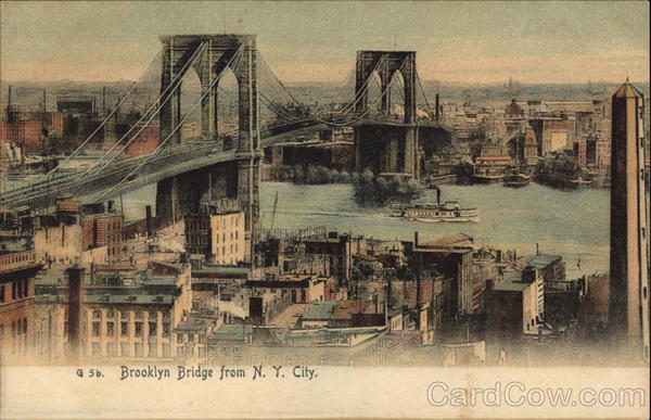 Front: 11 ROB NA N.PRINTER BINDER CER G 5b. Brooklyn Bridge from N. Y. City. chel La BELTING DEARE Alleit Back: The Rotograph Co., N. Y., City. (Germany.) Two cents