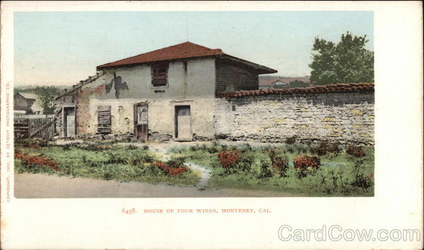 Front: COPYRIGHT, 1902, BY DETROIT PHOTOGRAPHIC CO. WILP 6458. HOUSE OF FOUR WINDS, MONTEREY, CAL. Back: AND CANADA, FOREIGN, Two CENTS.