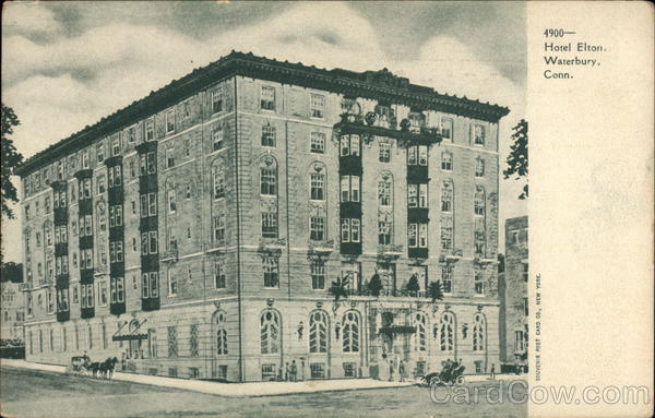 Front: UI: **** CFD ROM Jam) TAARTE ******** SOUVENIR POST CARD CO., NEW YORK. WIE 7149 CE DEC RES HOAR C) WEB MAM MAMMA FET IT 3113 Conn. Waterbury, Hotel Elton, 4900->> Back: Po -1 -10 TWO CENTS
