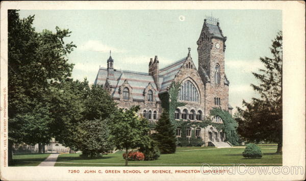 Front: COPYRIGHT, 1903, BY DETROIT PHOTOGRAPHIC CO. mil 7260 JOHN C. GREEN SCHOOL OF SCIENCE, PRINCETON UNIVERSITY. Back: AND CANADA, FOREIGN, Two CENTS.