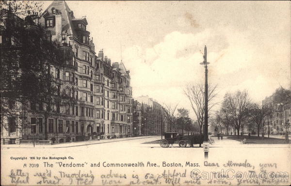 A 7019 The "Vendome" and Commonwealth Ave., Boston, Mass. Dear Almeda, your