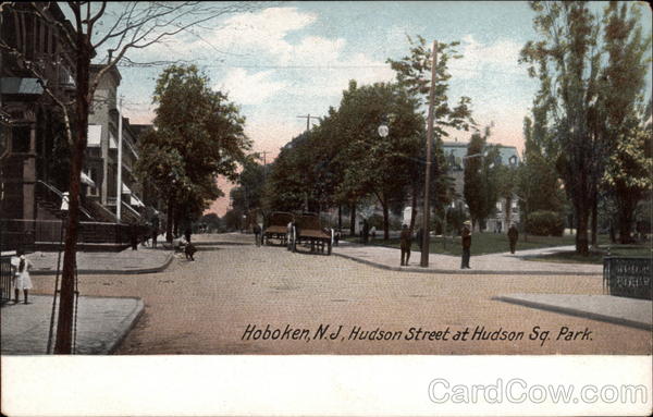 Front: Hoboken, N.J, Hudson Street at Hudson Sq. Park. Back: THE HUGH C. LEIGHTON CO., MANUFACTURERS, PORTLAND, ME., U.S.A. FRANKFORT /MAIN, GERMANY. N92088. One Cent for United States, and Island Possessions, Cuba, Canada and For Foreign.