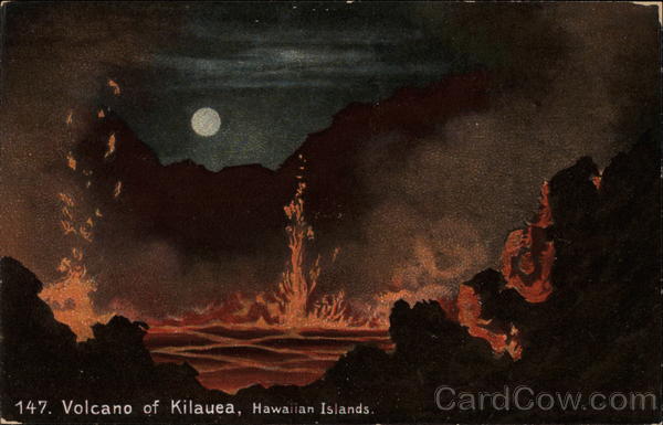 Front: 202 147. Volcano of Kilauea, Hawaiian Islands. Back: GERMANY. Published by the Island Curio Co., Jas. Steiner, Honolulu. POSTAL CARD Private Dailing Card CORRESPONDENCE SPACE M. TWO CENTS