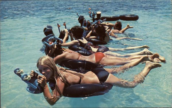 | About five miles out in bay of Port-au-Prince is Sand Cay coral reef. Tourists may swim or float over formations while viewing exceptional undersea scenery. White sand area where glass-bottom boat anchors can be seen clearly through crystal water |