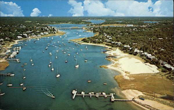AIR VIEW OF BASS RIVER CAPE COD - MASS. Color Photo & Published by J. Lazarus, P.O. Box 367, Hyannis, Mass. 02601 137812 Address