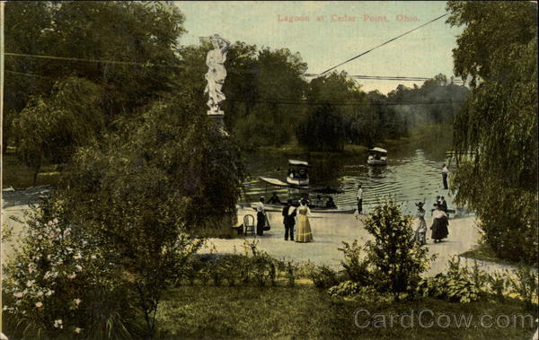 Front: Lagoon at: Cedar Point, Ohio. Back: PATO 'Auedwion Cleveland NewS CHRO No. M-2252-Pub. by land, Ohio. MERI BERLIN LEIPZIG NEW YORK. "Regoon at Cedar Point Ohio" 200 TWO CENTS